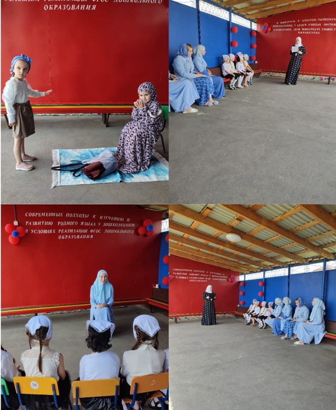 Доклад воспитателя Юсупхаджиевой Р.С. на тему: «Бекалахь, ненан мотт, тахна дуьнене, машаре кхойкхуш. Выступление воспитанниц старшей группы «Светлячки» (Талгаева М., Мусаева М., Ибриева М. – стихи) Чеченский национальный танец – воспитанницы старшей группы. ООД воспитателя средней группы. Сценка на чеченском – воспитанницы второй младшей группы.
