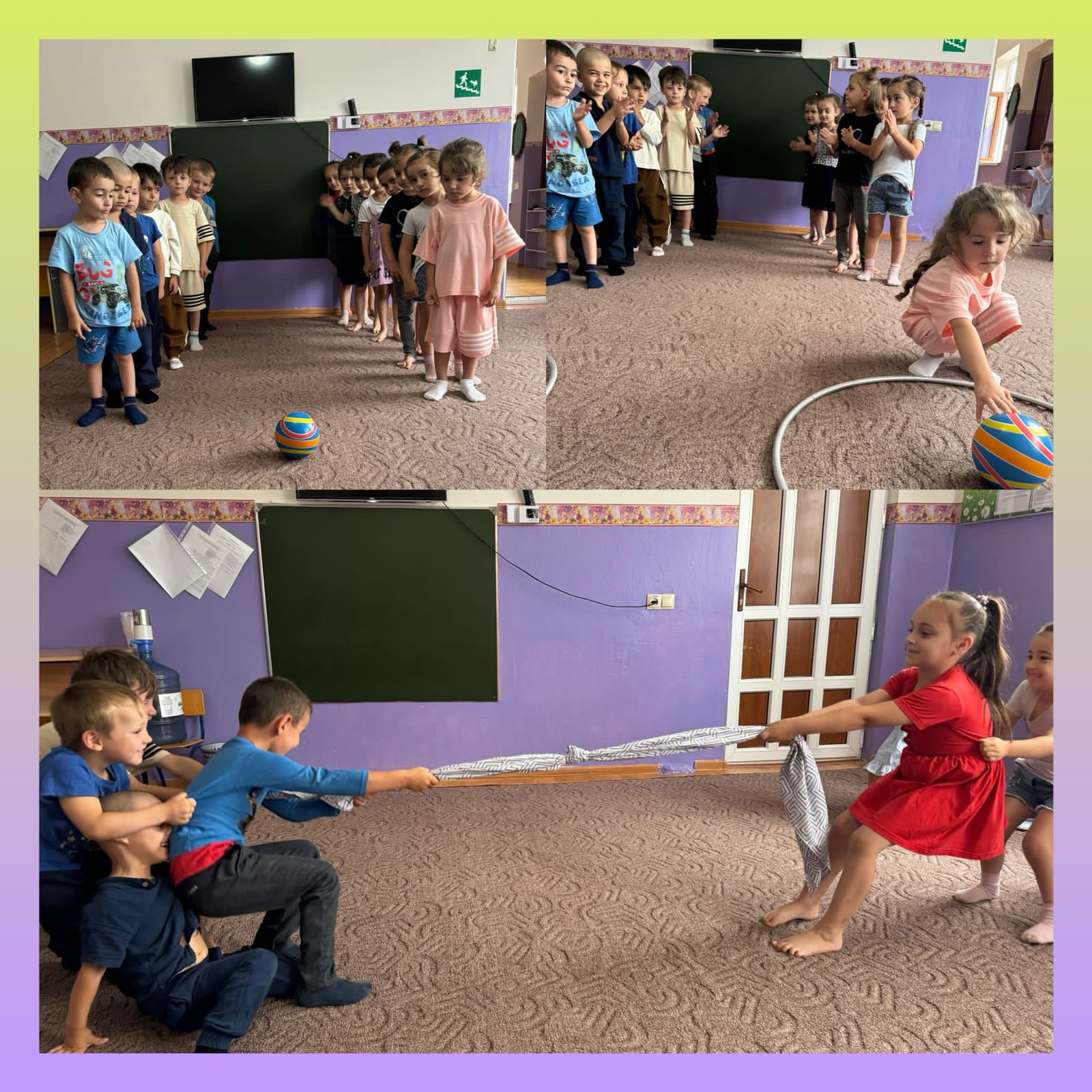 Перед началом спортивного мероприятия все команды вышли на построение. Программа соревнований была довольно насыщенной. Первым заданием было представление команд. Оно было задорным и рифмованным. Командам были предложены занимательные, иногда очень непростые конкурсы с бегом, с мячами, с обручем, скакалками, где они смогли проявить свои спортивные навыки.