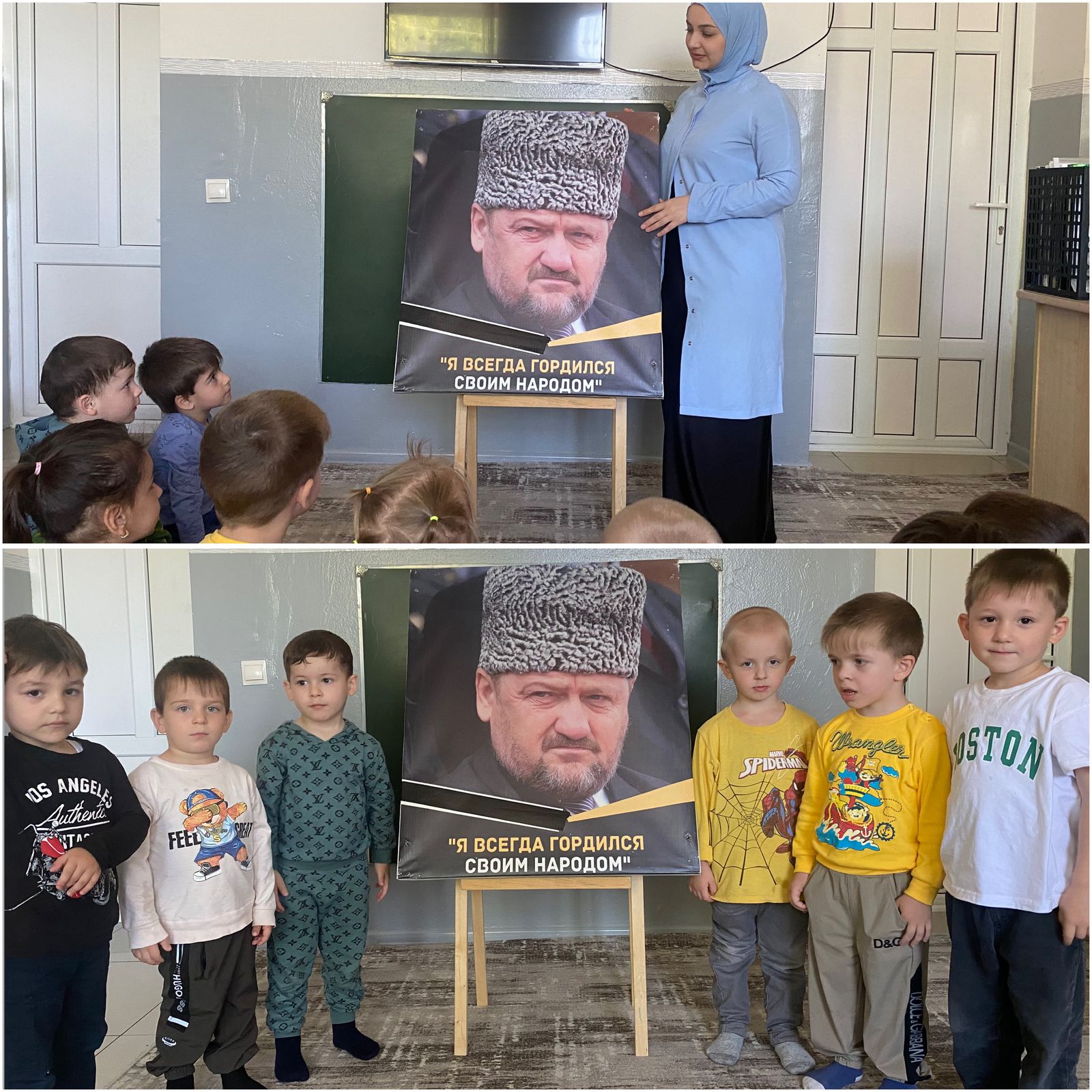 Воспитатели рассказали детям об этом выдающемся человеке, отдавшем свою жизнь за мир и процветание на чеченской земле.