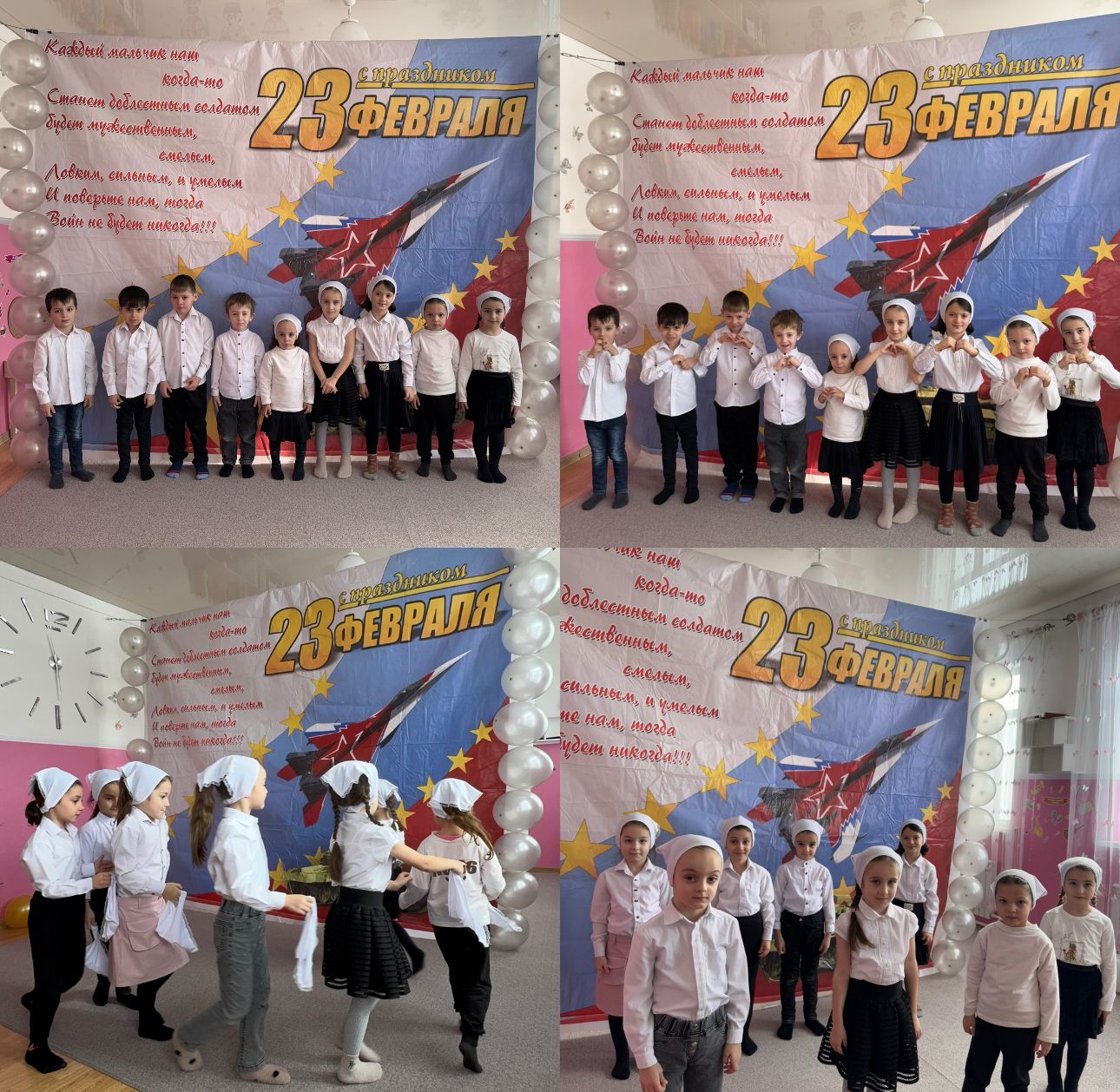 Дети под руководством воспитателей сделали открытки-рубашки для дедушек и пап к празднику. В честь защитников Отечества звучали песни, стихи из уст воспитанников нашего сада. Веселые эстафеты, яркие спортивные номера не оставили равнодушным никого.